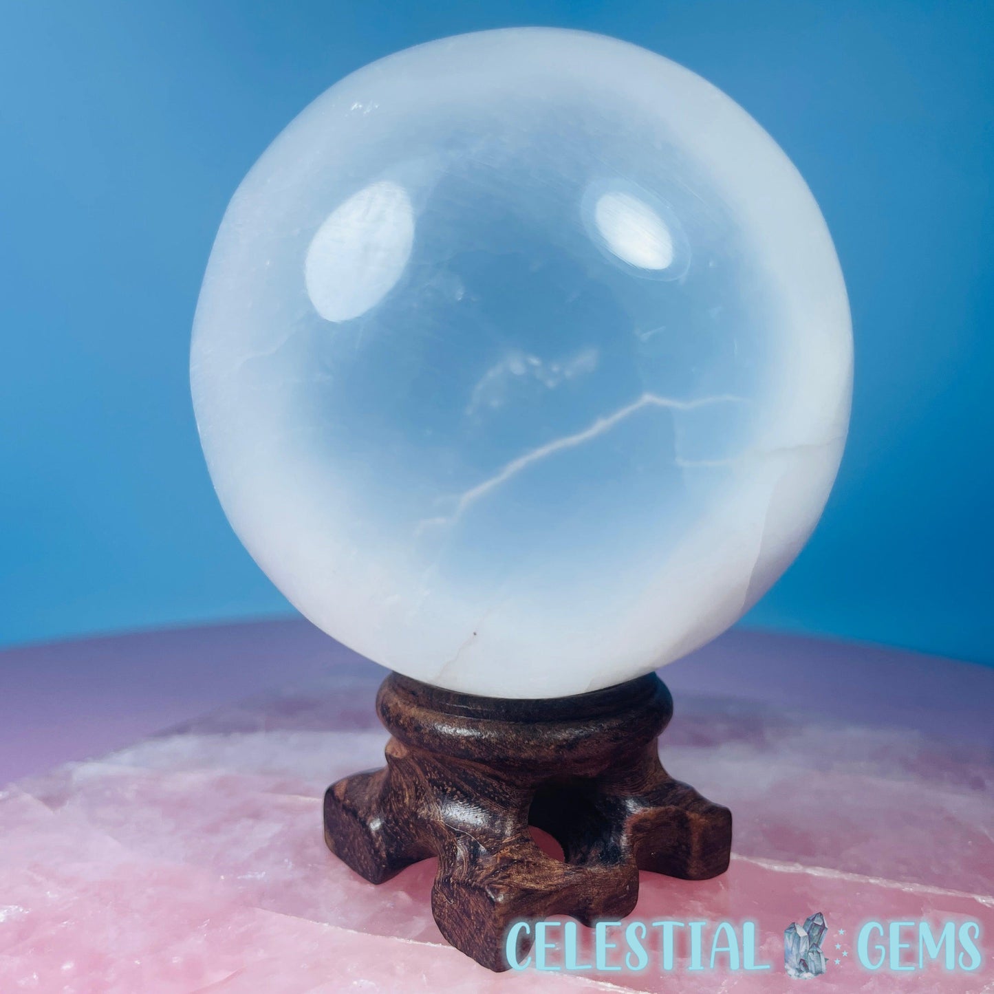 A large sphere of polished Selenite (AKA Satin Spar) with excellent shine and clarity. These Selenite items are ideal for cleansing crystals in your home. Place your crystals near to your Selenite to cleanse them.