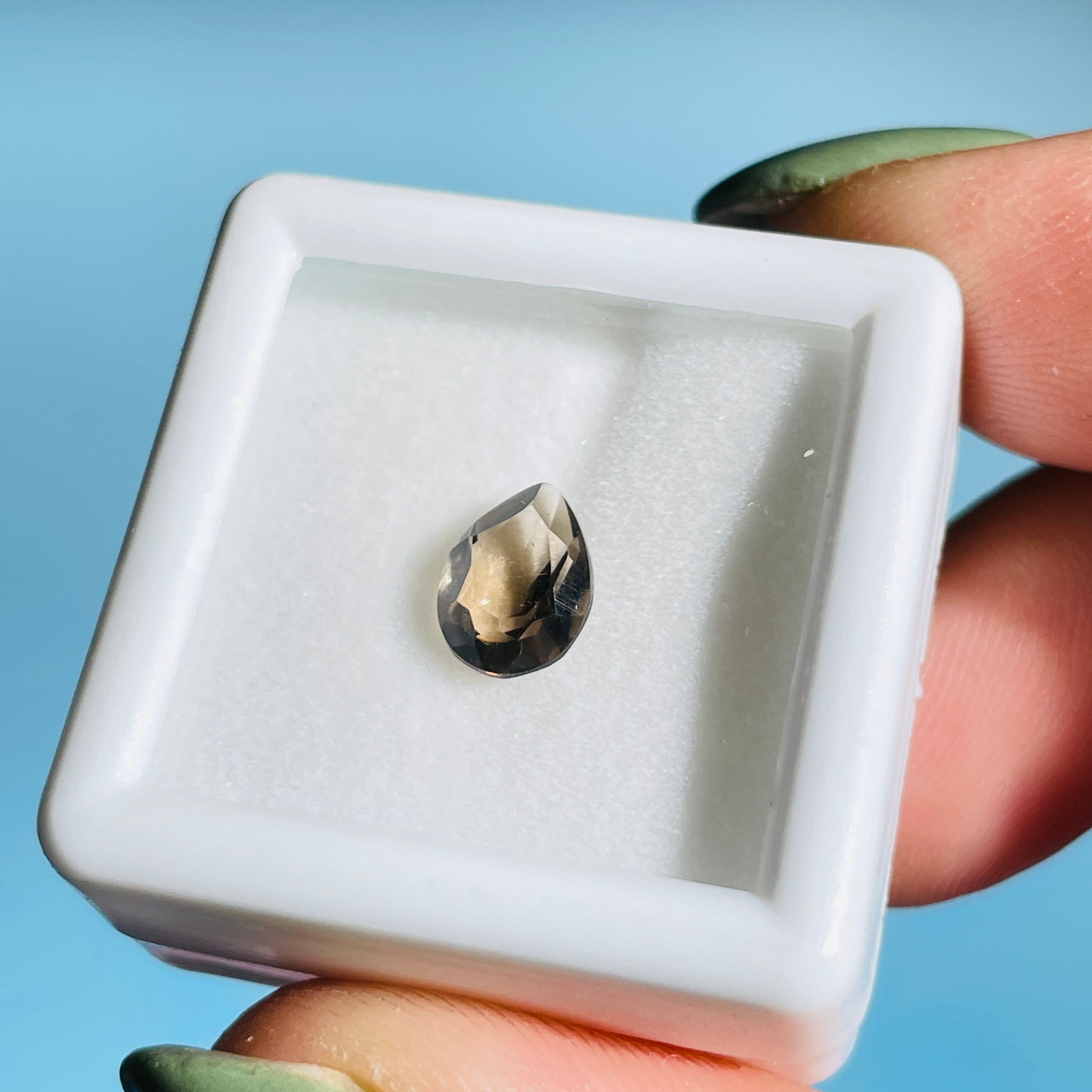 Smoky Quartz Faceted Oval-Cut Gemstone in Specimen Box