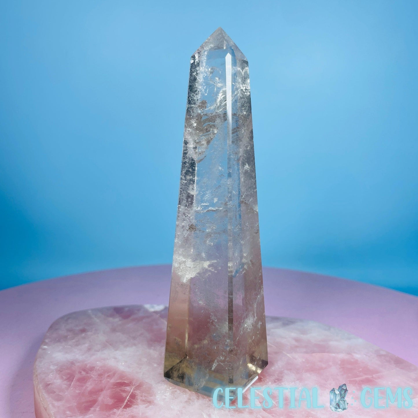 An extremely well-carved obelisk tower of Smoky Quartz with excellent clarity and bevelled edges.