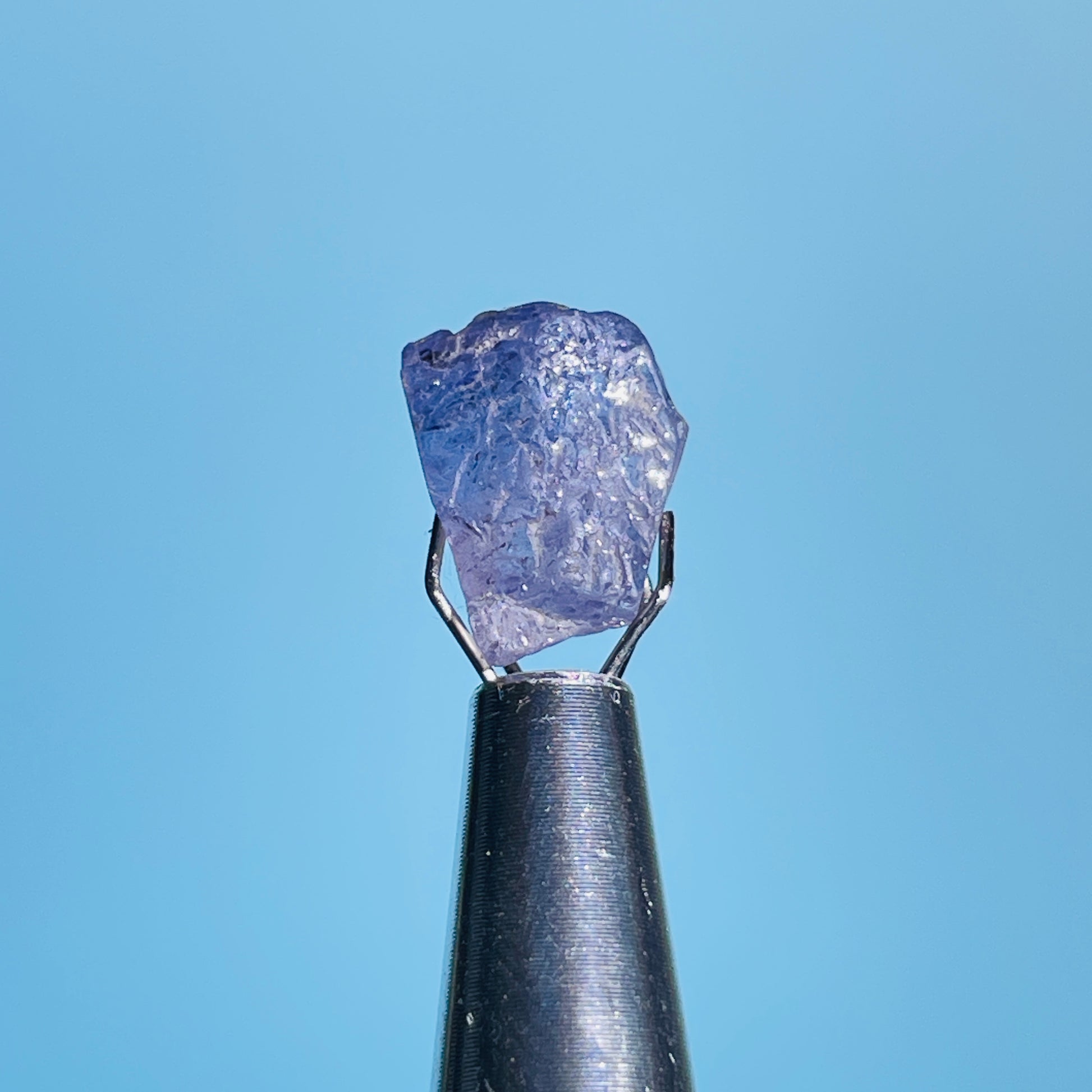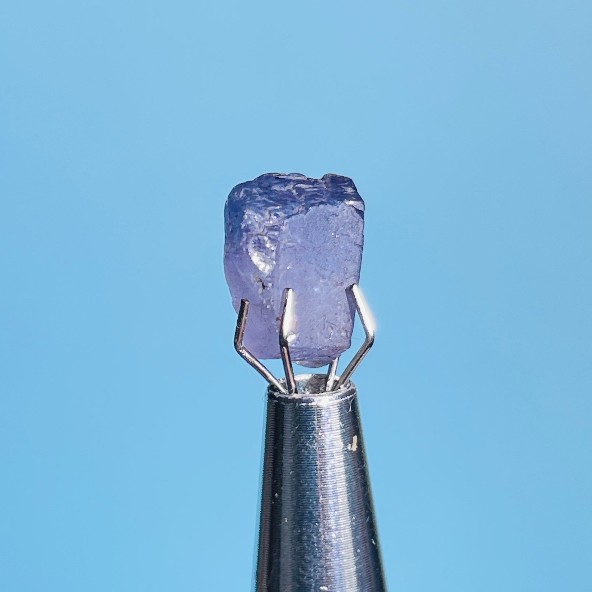 A Tanzanite mini crystal specimen, a very rare purple Zoisite mineral, found exclusively in Tanzania. This crystal measures 1.1cm x 1cm.