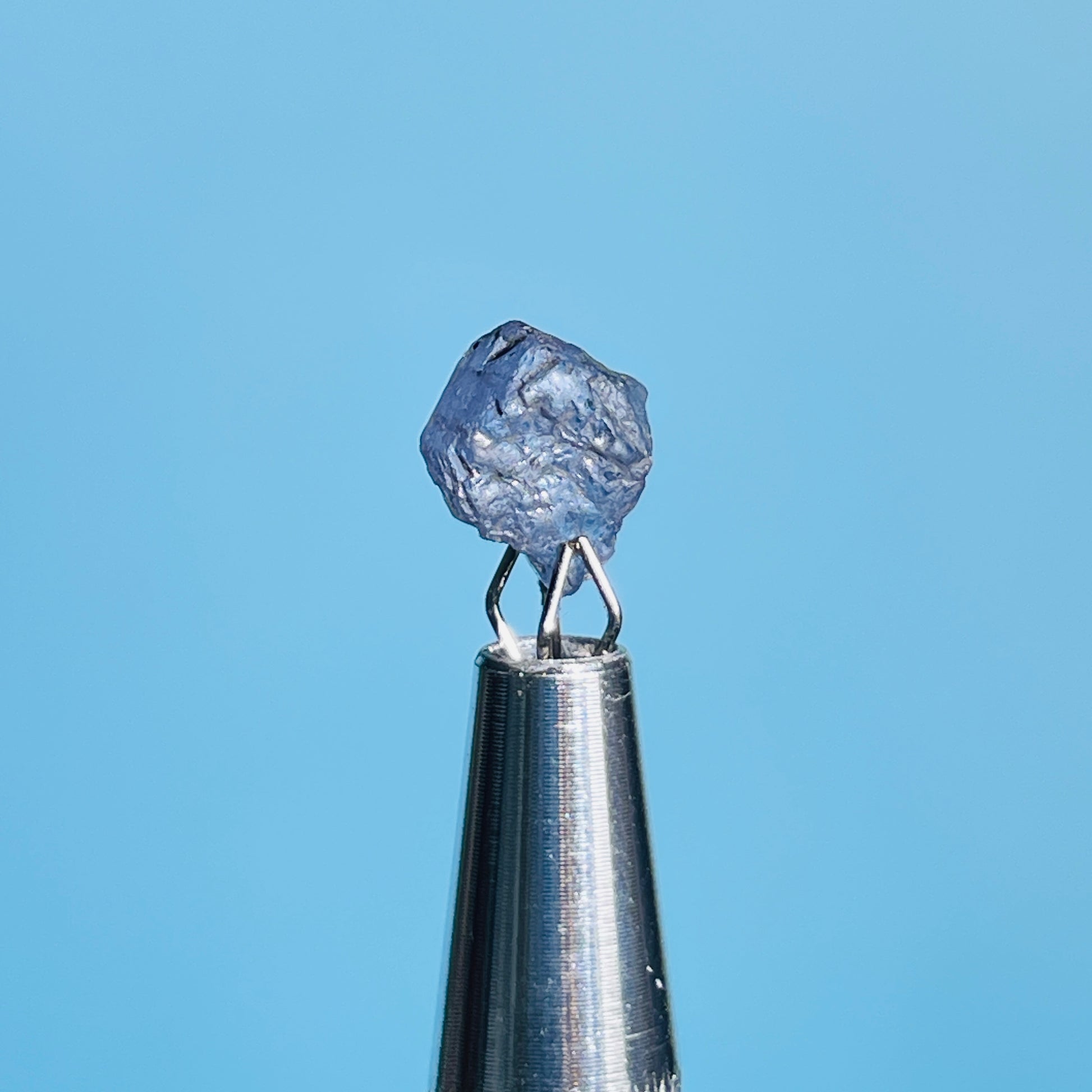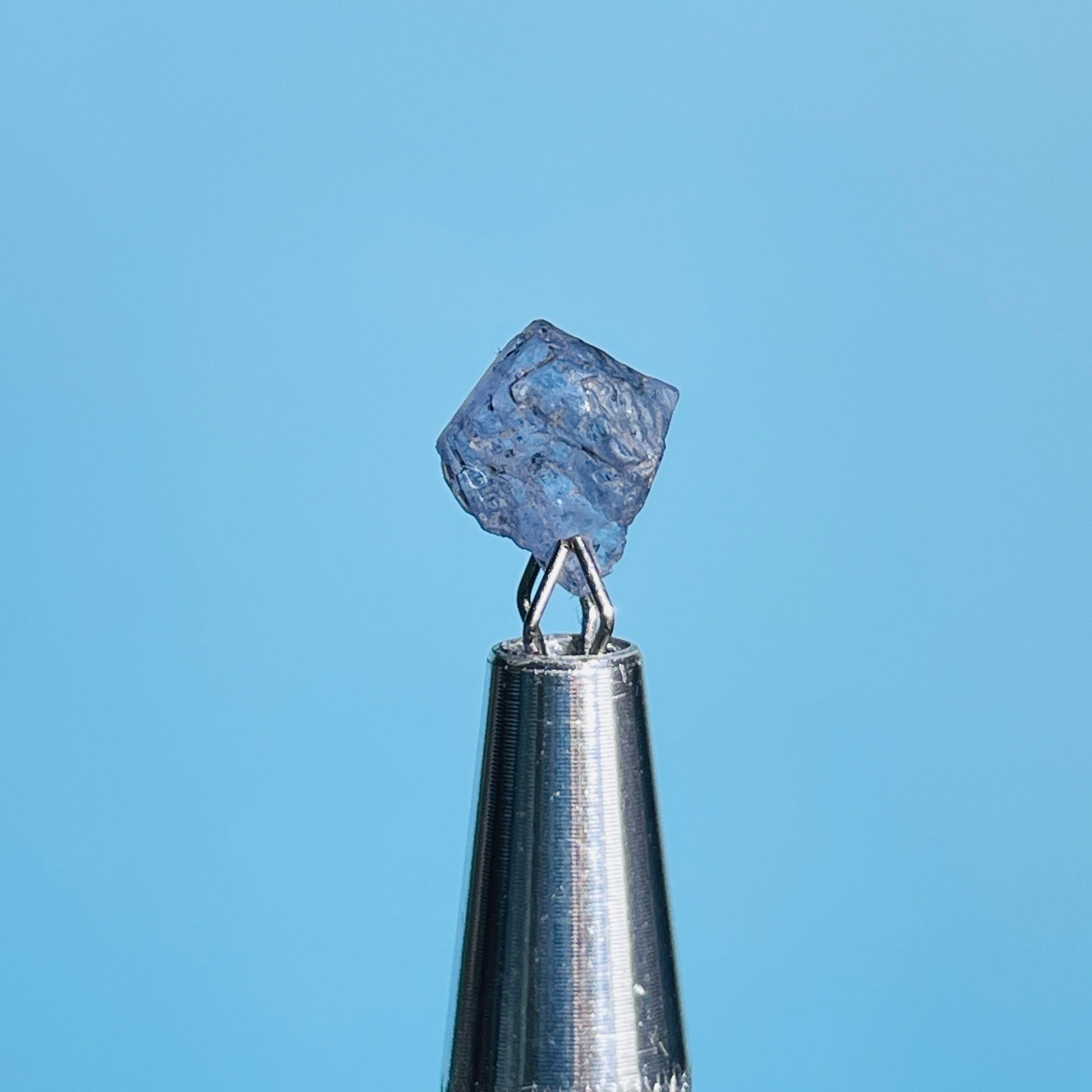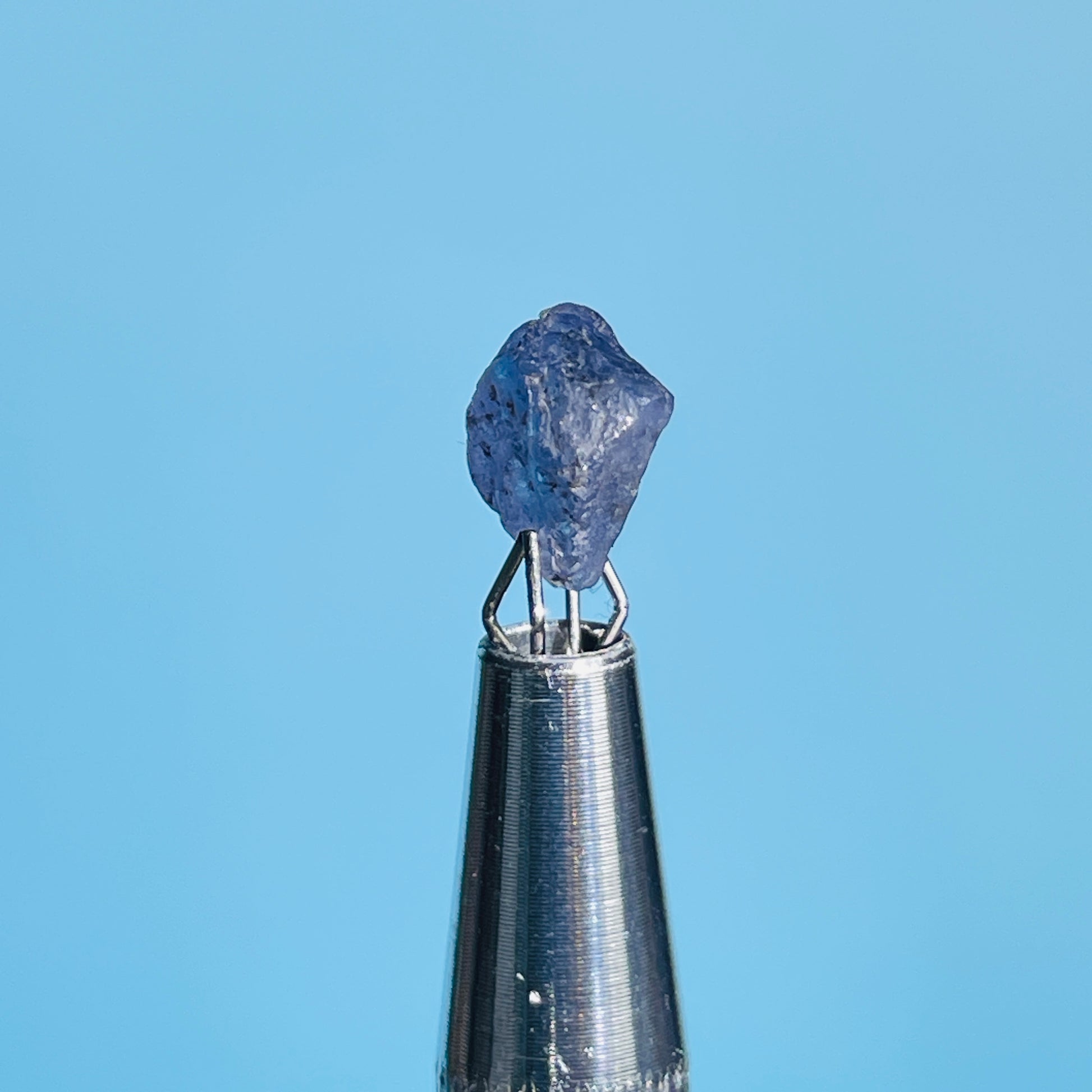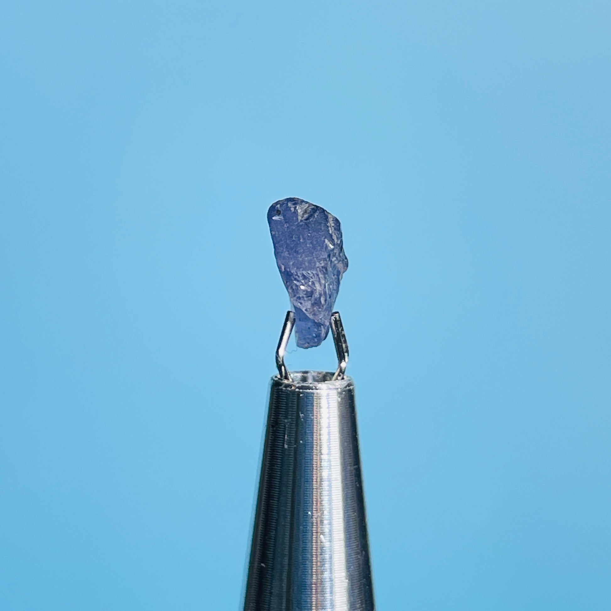 A Tanzanite mini crystal specimen, a very rare purple Zoisite mineral, found exclusively in Tanzania. This crystal measures 1.2cm x 0.6cm.