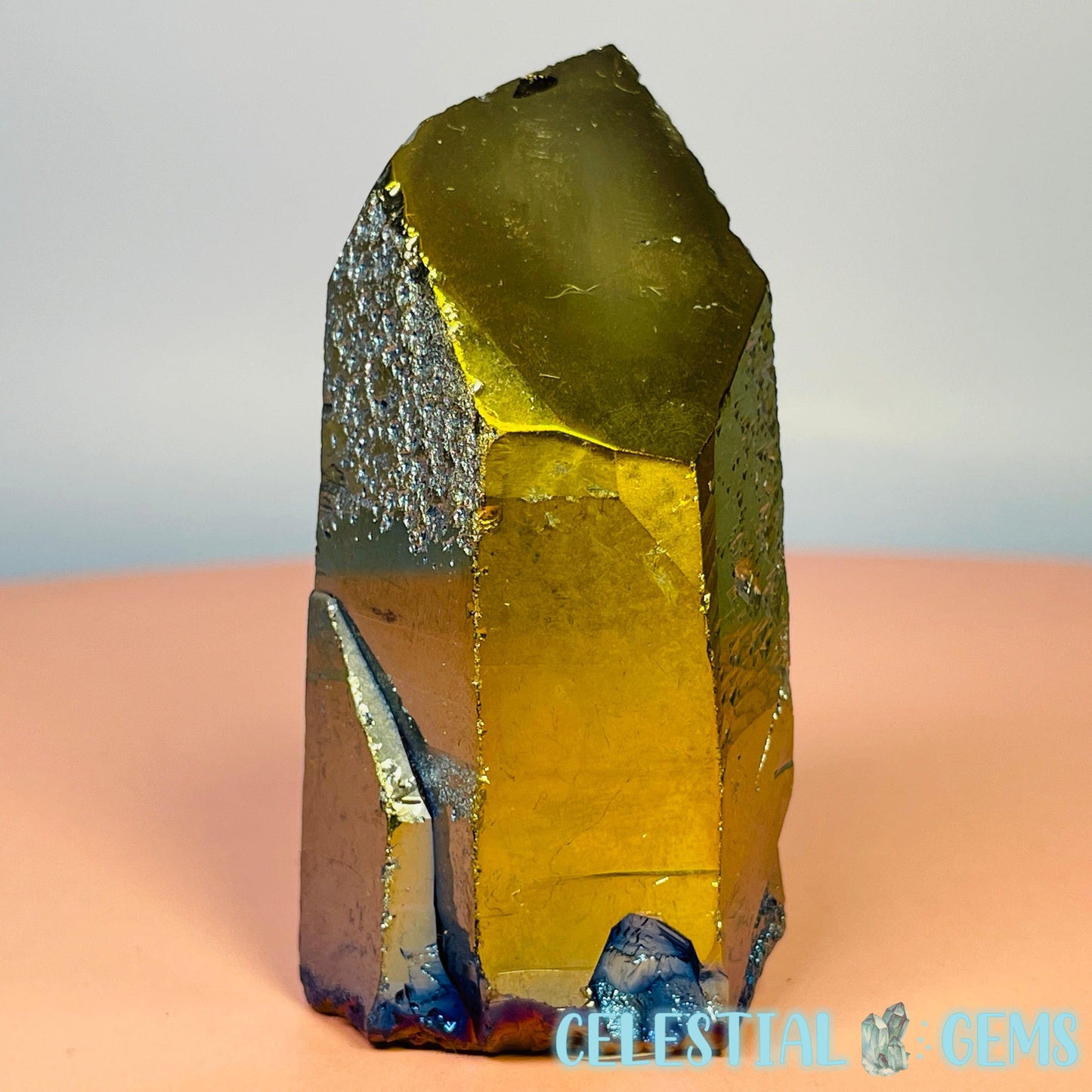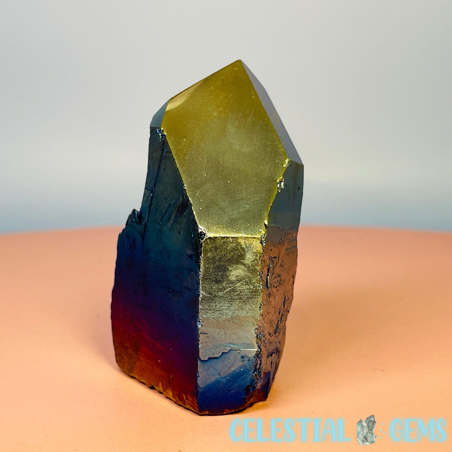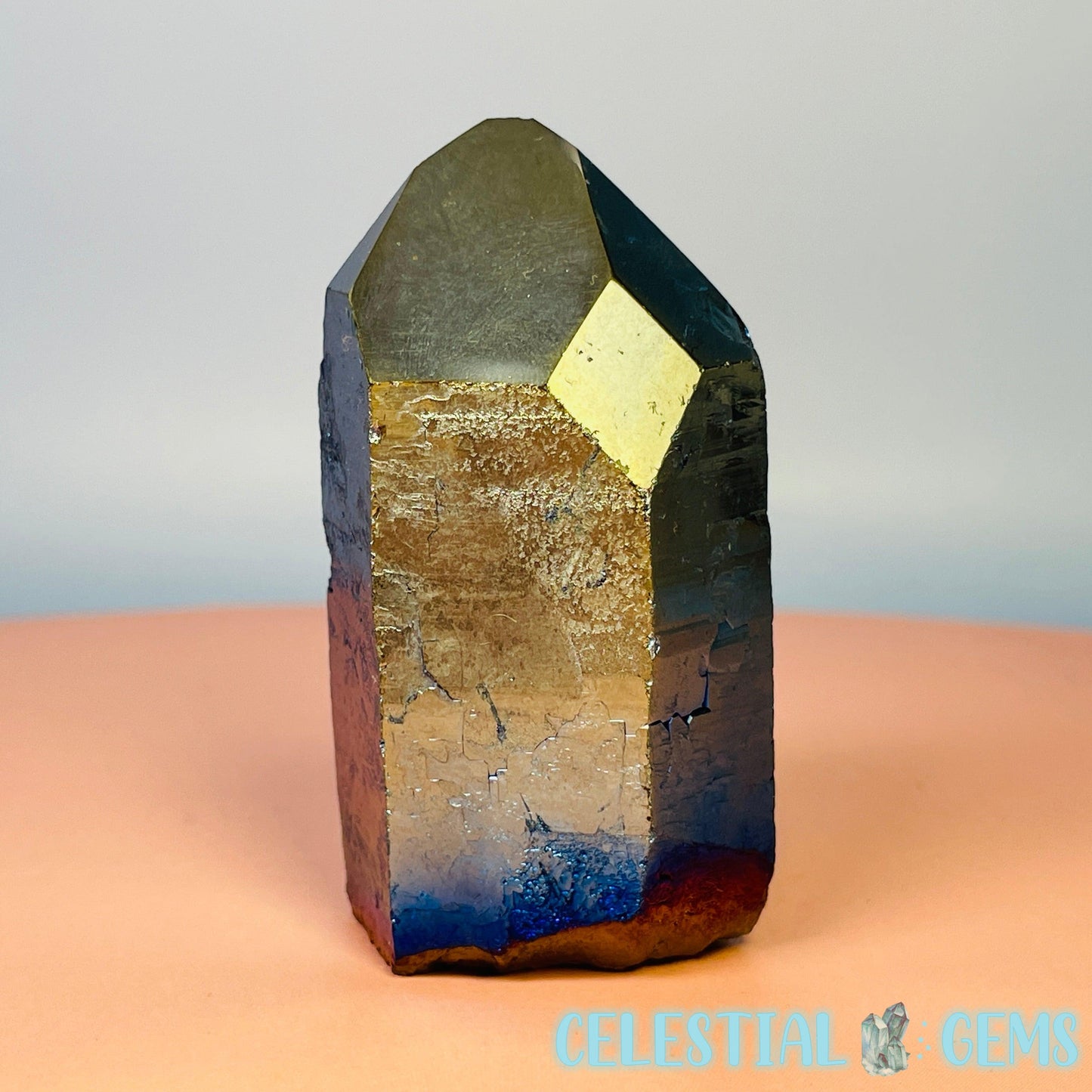 Aura coated natural Quartz. Measurements below. Sold individually. Please select which piece you wish to purchase from the style number below.