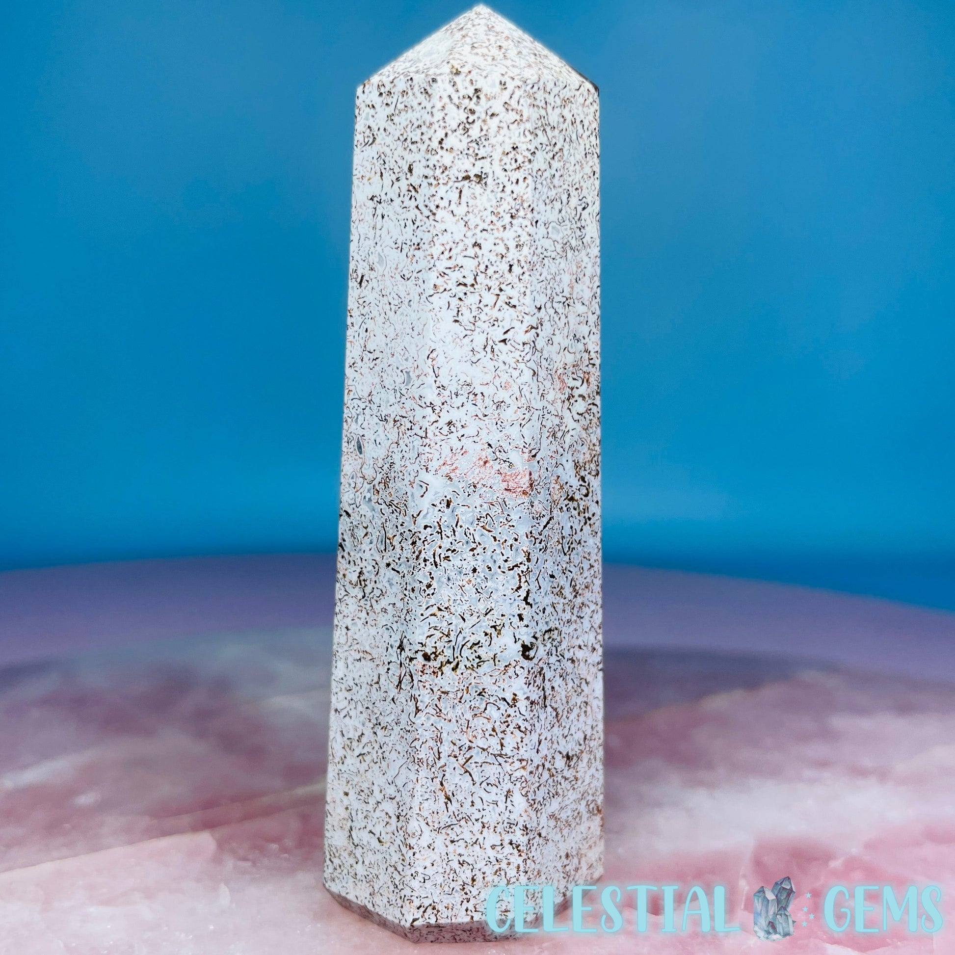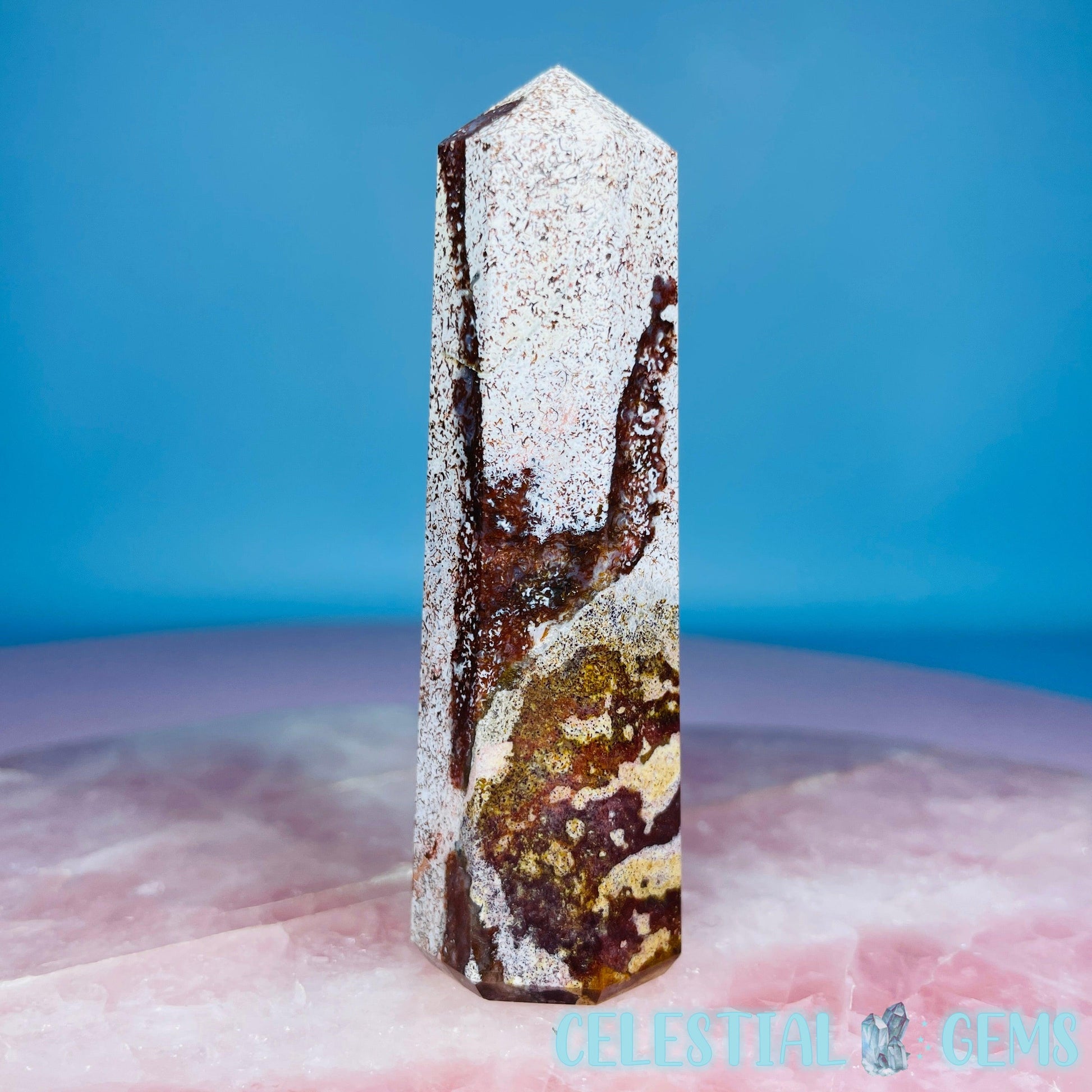 A gorgeous multi-coloured 8-sided tower of Unicorn Jasper, a unique Jasper sourced from Madagascar. Approx. 8.1cm x 2.5cm.