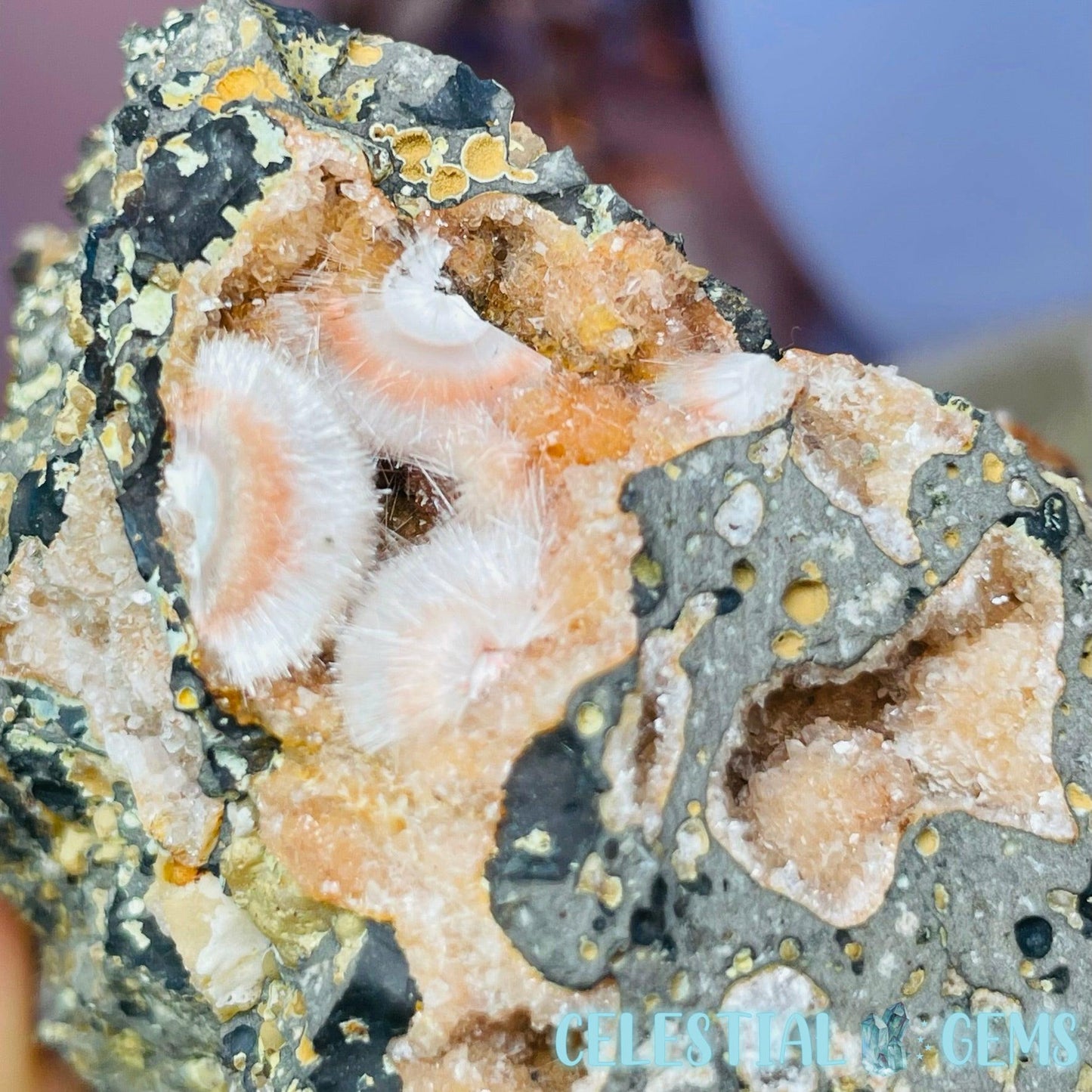 PLEASE NOTE: Due to the extreme fragility of this material, we cannot guarantee safe travel. We will take extra precaution when packaging for travel, however there will likely be some minor damage to the Mesolite needles to be expected upon arrival.