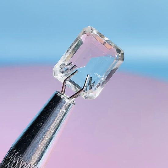 White Topaz Faceted Emerald-Cut Gemstone in Specimen Box